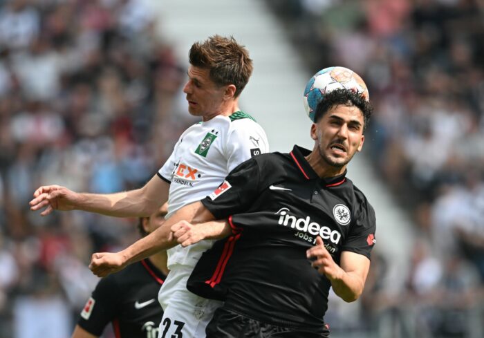 Nach diesem Motto hatte Glasner sein Team auch aufgestellt. Neben dem verletzten Martin Hinteregger fehlte zu Beginn auch die komplette Offensive um Daichi Kamada, Rafael Borré und Filip Kostic sowie das defensive Mittelfeld mit Kapitän Sebastian Rode und Djibril Sow. Acht Wechsel im Vergleich zum West-Ham-Sieg bedeuteten eine Menge Veränderung – und direkt einen Fehlstart.