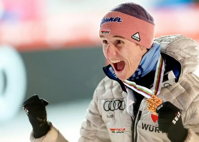 Nur ein Gold-Coup, wie er Tüftler Geiger in Planica im Dezember 2020 gelang, will diese Saison bislang nicht klappen. Für Vikersund gelten die Spezialisten Geiger und Eisenbichler aber als heiße Kandidaten für den Titel. Im Team gab es seit Erstaustragung 2004 noch nie Gold, weil stets Norwegen oder Österreich siegte.