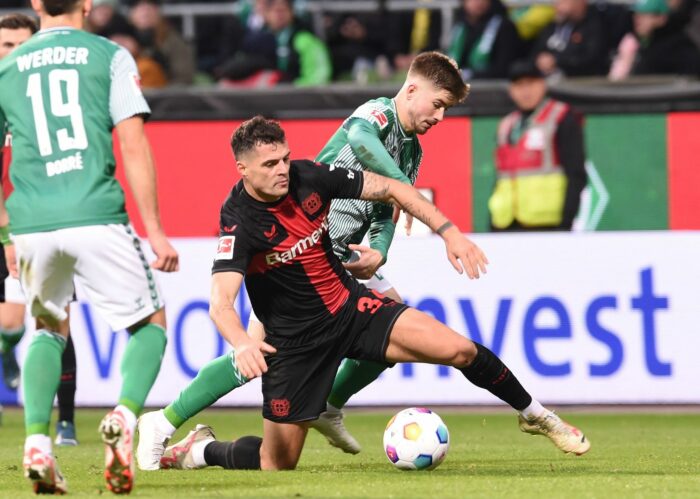 Die Gäste ließen die Bremer in den ersten Minuten kommen, übernahmen dann aber mehr und mehr mit ihrer spielerischen Klasse die Kontrolle. Ein Treffer von Victor Boniface (6.) wurde zu Recht wegen Abseits abgepfiffen. Ansonsten blieben große Bayer-Chancen zunächst aus. So musste diesmal das Eigentor von Deman zur Führung reichen.