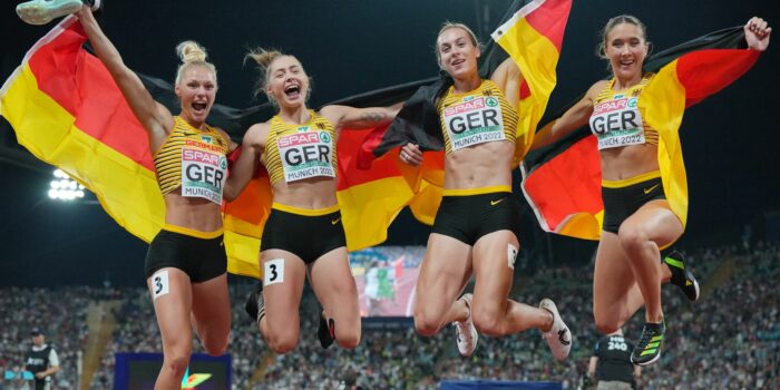 «Ich glaube, man hat jetzt gesehen, worauf wir uns vorbereitet haben und auch warum. Es war eine einzigartige Stimmung hier in München», sagte Sprinterin Alexandra Burghardt. «Und ich glaube auch, dass das jetzt die beste Werbung war, die wir für unsere Sportart machen konnten», fügte die Startläuferin hinzu. Für die 28-Jährige ist es ein besonderes Jahr: Bei den Olympischen Winterspielen gewann Burghardt als Anschieberin Silber im Bob, nach WM-Bronze und EM-Gold mit der Staffel hat sie nun einen kompletten Medaillensatz. «Es ist wirklich wie ein Märchen», sagte Burghardt.