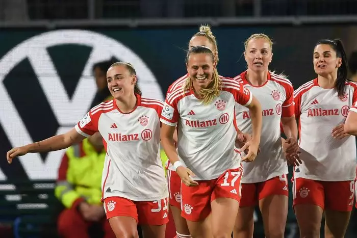 Die Münchnerinnen haben ihren Vorsprung bei fünf ausstehenden Spieltagen auf sieben Punkte ausgebaut. Die ehemalige Wolfsburgerin Pernille Harder (48. Minute), Klara Bühl (57.), Lea Schüller (76.) und Georgia Stanway (87.) trafen vor 24.437 Zuschauern in Wolfsburg, darunter Bundestrainer Horst Hrubesch.