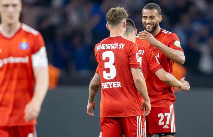 War es das? Nach dem 1:0 im Hinspiel der Bundesliga-Relegation feiern die Hamburger so, als sei die Zweitliga-Zeit vorbei. Hertha BSC gibt sich aber nicht so leicht geschlagen.