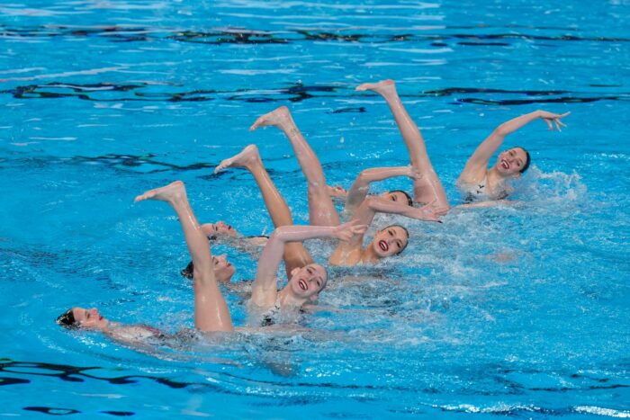 Im Synchronschwimmen ist das Lächeln ein fester Bestandteil des Sports. Die Athletinnen lächeln bei ihrer Vorstellung. Beim Verlassen des Beckens lächeln sie. Und auch wenn sie auf die Punkte für ihre Darbietungen warten, lächeln sie.