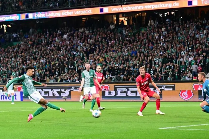 Auch Werder wollte sich nach dem schwachen 2:4 vom vergangenen Sonntag bei Aufsteiger Heidenheim besser präsentieren. Fünf Wechsel vollzog Trainer Ole Werner – an der fehlerhaften Defensive änderte sich aber zunächst nichts. Kölns Linton Maina dribbelte sich durch die Werder-Abwehr und prüfte mit einem Flachschuss Torhüter Jiri Pavlenka (14.).