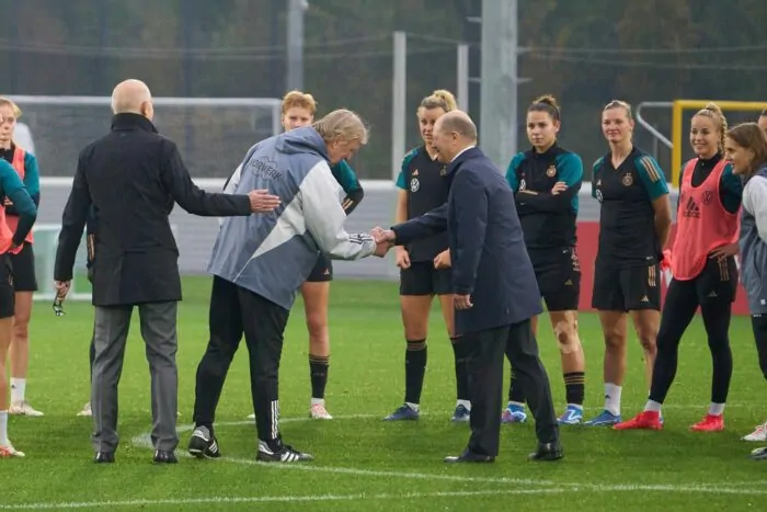 Für Scholz war es schon die dritte Begegnung mit der DFB-Auswahl. Nach der erfolgreichen EM im Sommer 2022 in England, als die DFB-Auswahl erst im Finale gegen den Gastgeber verlor, war er in der Verbandszentrale zu Besuch gewesen. Im Februar war er Gast bei einem Länderspiel gegen Schweden in Duisburg. «Mich begeistert sehr, wie der Frauenfußball in Deutschland Karriere gemacht hat», sagte der Kanzler.