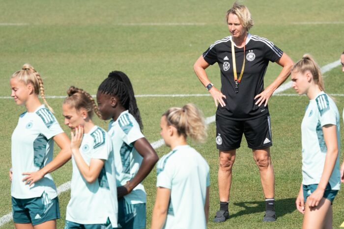 Rechtzeitig zurückgekehrt ist Kapitänin Alexandra Popp, die wegen einer Corona-Infektion eine mehrtägige Trainingspause einlegen musste. Die 31 Jahre alte Offensivspielerin vom deutschen Meister VfL Wolfsburg soll in den kommenden Tagen weiter aufgebaut werden und definitiv noch nicht über 90 Minuten zum Einsatz kommen. Nicht dabei ist Popps Teamkollegin Tabea Waßmuth, die sich nach einer Wadenverletzung im Aufbautraining befindet.
