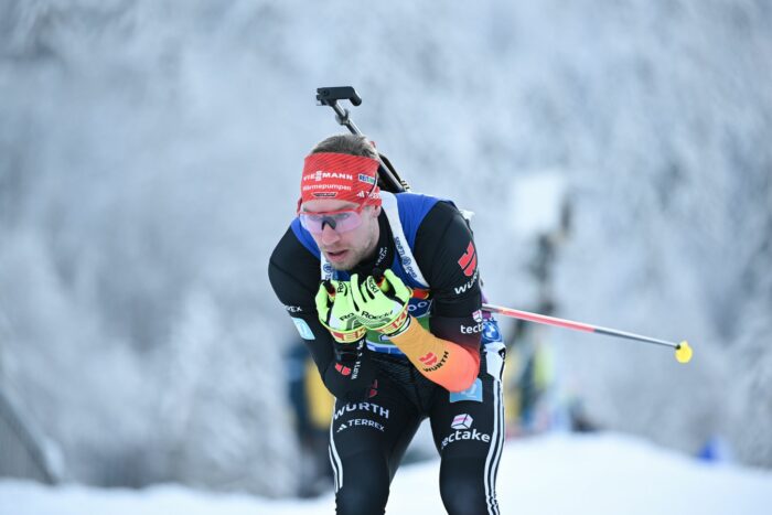 In die letzten Rennen vor der WM starten die deutschen Biathleten mit einem Podestplatz. Johannes Kühn wird Dritter, ein Debütant überrascht. Nicht zu schlagen ist Norwegens Superstar.