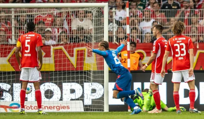 Union reagierte hektisch und unglücklich. Volland traf Simakan von hinten mit einer Grätsche. Schiedsrichter Daniel Schlager zückte die Rote Karte. Union fand in Unterzahl kein Mittel mehr, die Niederlage abzuwenden. In der Schlussviertelstunde wurde es vorübergehend still im Stadion wegen eines Notarzteinsatzes im Gästeblock. Sesko sorgte mit seinen ersten beiden Bundesligatoren für die Entscheidung.