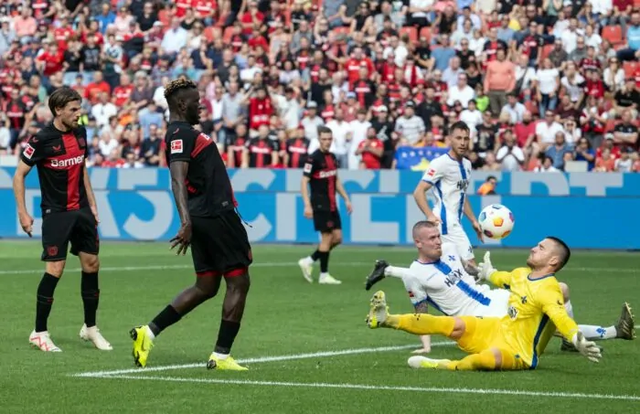 Neuzugang Victor Boniface mit seinem zweiten Doppelpack hintereinander (21./61.), Weltmeister Exequiel Palacios (49.), Nationalspieler Jonas Hofmann mit seinem ersten Treffer für Leverkusen (68.) und der drei Minuten zuvor eingewechselte Adam Hlozek (83.) schossen die Tore für Bayer. Die Lilien hatten durch das erste Bundesliga-Tor des erst 19 Jahre alten Schweden Oscar Vilhelmsson ausgeglichen (25.).