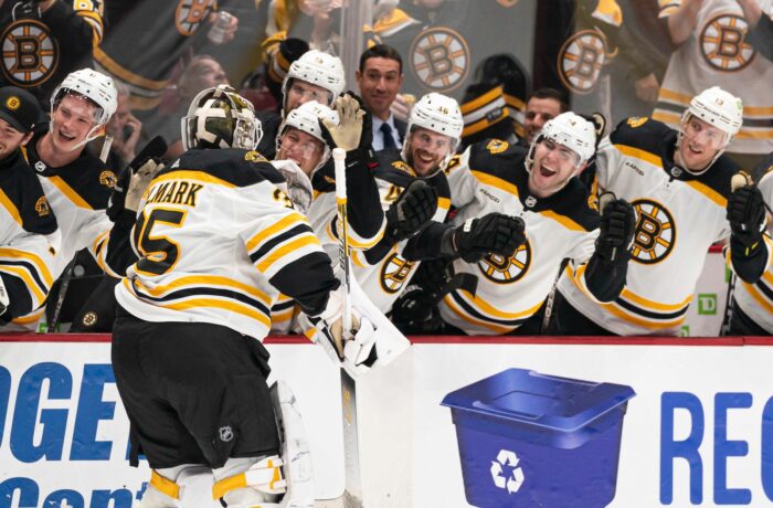 Ende des Schlussdrittels lagen die Bruins mit 2:1 in Führung, die Canucks nahmen ihren Torhüter aus dem Spiel und einen sechsten Feldspieler auf das Eis. Als Ullmark am eigenen Tor den Puck erhielt, schoss er die Scheibe über das ganze Feld nach vorne und traf 48 Sekunden vor Spielende zum 3:1 (2:0, 0:0, 1:1)-Endstand ins leere Tor.