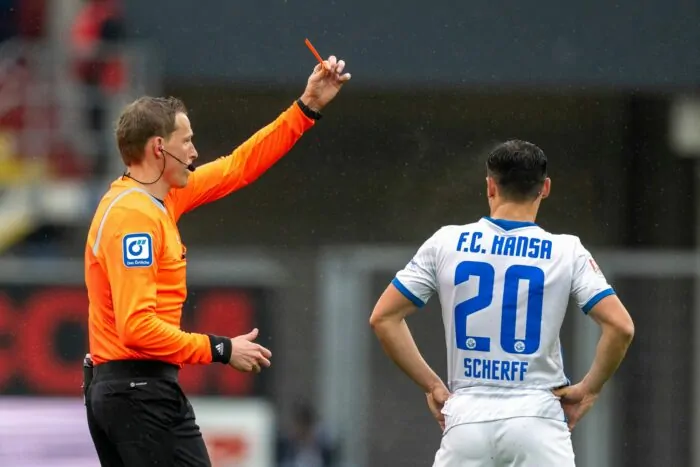 Glatt Rot gab es auch in Paderborn. Hansa Rostocks Lukas Scherff wurde nach einer Notbremse schon im ersten Durchgang des Feldes verwiesen. Mit einem Mann mehr spielte der SC Paderborn seine Überlegenheit aus und siegte mit 3:0 (0:0).