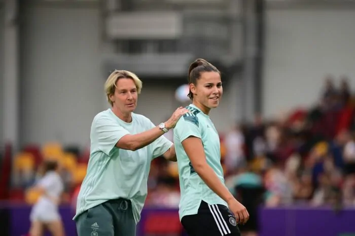 Gegen schnelle Flügelstürmerinnen haben die deutschen Frauen schon länger ein Problem. Als Problemzone gilt die rechte Seite: Nachdem sich Bayern-Ass Giulia Gwinn erneut einen Kreuzbandriss zugezogen hat, galt Frankfurts Sophia Kleinherne als erste Anwärterin für diesen Posten. Voss-Tecklenburg scheint davon aber nicht überzeugt – gegen Sambia zog sie plötzlich Flügelstürmerin Svenja Huth zurück in die Defensive. Auf links ist Felicitas Rauch (Wolfsburg) alternativlos – zumal Münchens Carolin Simon kurzfristig verletzt aus dem Kader gefallen ist.