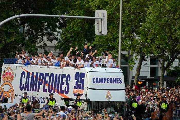 Nach der Fahrt im offenen Bus durch die Hauptstadt legte Kapitän Marcelo der Statue der griechischen Königin Kybele der Tradition folgend eine Clubfahne um den Hals und einen Real-Schal um den Kopf. Zu den Klängen von «We are the Champions» bekam «La Cibeles» vom Brasilianer – der seinen 24. Titel mit dem Verein gewann und damit Gento als erfolgreichsten Profi der Club-Geschichte übertraf – auch einen Kuss auf die Wange. «Campeonísimo» (Supermeister), titelte die Zeitung «AS» auf Seite eins – und forderte gleich «europäischen Nachschlag».