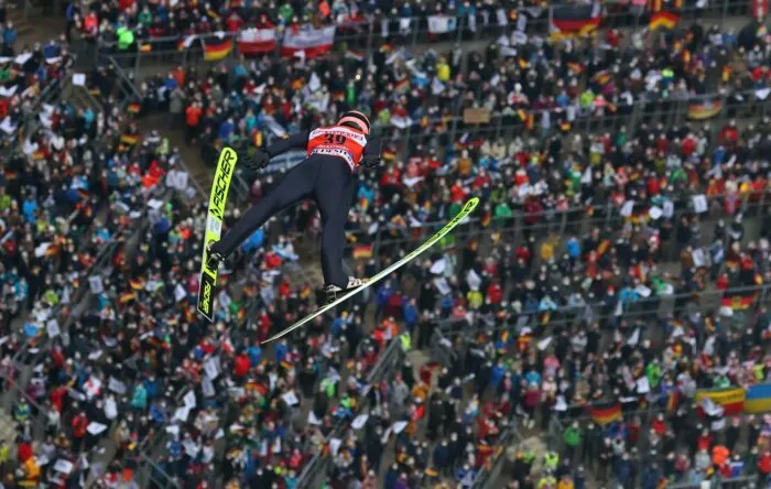 Das Wochenende war geprägt von exzellenten Flugeinlagen, der Slowene Domen Prevc schaffte mit 242,5 Metern gar einen Schanzenrekord. «Der Flug war großartig, ich habe es einfach genossen», sagte Prevc. Auch einen Sturz gab es, den Österreicher Daniel Huber erwischte es nach der Landung. Einen Tag später stand er mit einem Pflaster am Kinn im Auslauf und sagte dem ZDF: «Es braucht schon einiges, sich zu überwinden. Ich wollte gar nicht so daran denken, was die Konsequenzen sein könnten. Weil das ist sicher ein Fehler.»