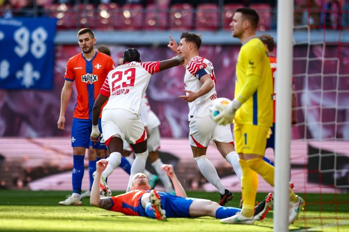 Vor 44.319 Fans sorgte der Darmstädter Thomas Isherwood (3. Minute) per Eigentor für die frühe Leipziger Führung. In der zweiten Halbzeit dauerte es bis zum Tor ebenfalls nur wenige Minuten, der eingewechselte Christoph Baumgartner (50.) erhöhte.