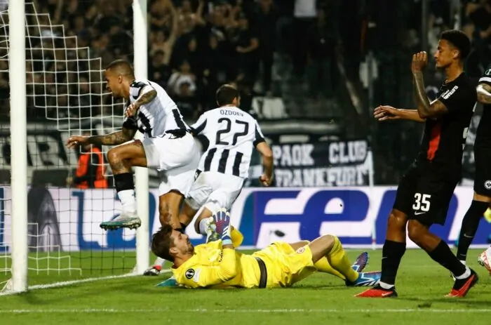 Vor 28.701 Zuschauern brachte Andrija Zivkovic den Gastgeber in der 28. Minute in Führung, die Omar Marmoush (68.) egalisierte. In der Nachspielzeit traf Konstantinos Koulierakis (90.+2) zum Sieg für die Griechen, die mit sechs Zählern an der Tabellenspitze stehen. Nächster Gegner der Hessen, die zum Auftakt einen 2:1-Sieg gegen den FC Aberdeen gefeiert hatten und in der Gruppe G weiter drei Punkte aufweisen, ist am 26. Oktober der finnische Meister HJK Helsinki.