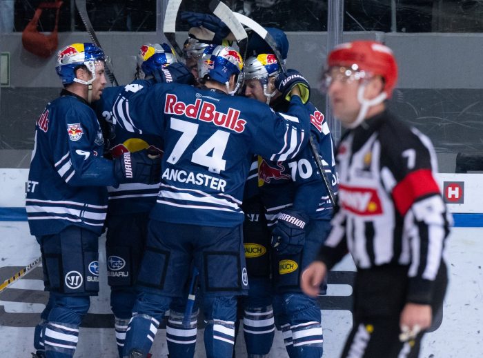 Titelverteidiger EHC Red Bull München ist nur noch zwei Siege vom Playoff-Halbfinale in der Deutschen Eishockey Liga entfernt. Das Team vom früheren Bundestrainer Toni Söderholm rang die Grizzlys Wolfsburg mit 7:3 (1:0, 3:3, 3:0) nieder. In der turbulenten Partie war es vor allem im Mittelabschnitt abwechslungsreich und erst im Schlussabschnitt deutlich.