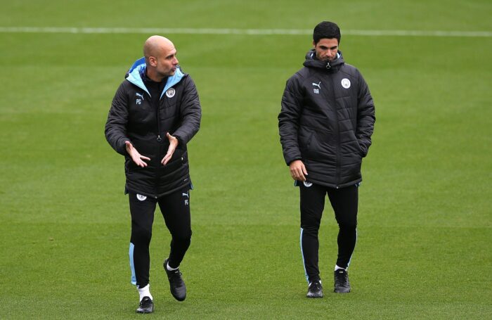 Einiges hat sich der Arsenal-Trainer nach eigener Aussage bei seinem früheren Lehrmeister Guardiola abgeschaut, den er schon beim FC Barcelona bewunderte. Arteta spielte damals in der zweiten Mannschaft von Barça. Als Guardiola 2016 bei Manchester City anheuerte, war Arteta sein absoluter Wunschkandidat als Assistent. «Ich mag keine Leute, die für mich arbeiten, sondern die, die für das Team arbeiten», sagte er mit Blick auf den Teamplayer Arteta. In zweieinhalb gemeinsamen Jahren bei City gewann das Duo zwei Meistertitel, den FA Cup und zweimal den Ligapokal.