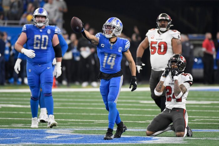 Goff hat bereits mit den Rams an einem Super Bowl teilgenommen und ist nun der unangefochtene Anführer in Detroit. Obwohl viele seiner Pässe in Richtung St. Brown zunächst nicht erfolgreich waren, war der 24-jährige Sohn einer Leverkusenerin und eines ehemaligen US-Bodybuilders mit insgesamt acht gefangenen Pässen, 77 Yards und einem Touchdown erneut ein entscheidender Faktor für sein Team. Ein Fehlpass von Buccaneers-Quarterback Baker Mayfield 93 Sekunden vor Schluss führte zum Sieg der Lions.