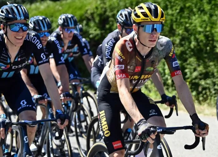 Geraint Thomas, Romain Bardet, David Gaudu oder Nairo Quintana – alle Mitfavoriten ließen Pogacar am Berg förmlich stehen. Der Slowene taumelte bedenklich, das Trikot komplett aufgerissen. Es war die größte Niederlage in seiner noch jungen Karriere. 2:22 Minuten liegt Pogacar in der Gesamtwertung nun als Dritter hinter Vingegaard, der die Etappe im Alleingang vor Altstar Quintana und Bardet gewann. Gesamtzweiter ist nun der Franzose Bardet 2:16 Minuten hinter dem Mann aus Hillerslev im hohen Norden.