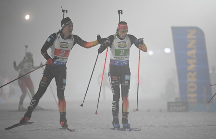 Bisher hat noch kein deutsches Paar bei einem Großereignis das oberste Podium im jüngsten WM-Rennen erreicht. Franziska Preuß und Erik Lesser waren bisher die Einzigen, die 2020 in Antholz WM-Silber gewonnen hatten.