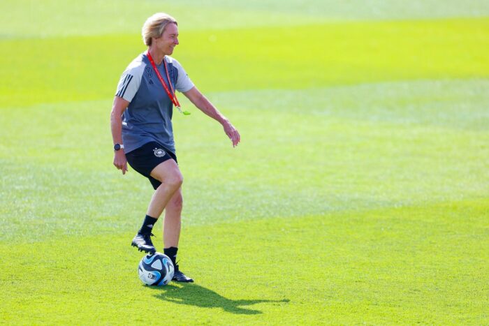 «So früh, wie ich schwimme, ist noch keiner auf.» Meistens steht die Bundestrainerin der deutschen Fußballerinen um 6.15 Uhr auf und ist dann um 6.30 Uhr im Wasser. Die Tage im Trainingslager in Herzogenaurach sind sonnig und lang. Vor dem Abflug der deutschen Fußballerinnen zur Weltmeisterschaft nach Australien und Neuseeland (20. Juli bis 20. August) spricht die 55-Jährige im Interview der Deutschen Presse-Agentur über die WM-Aussichten, ihre Spielerinnen und die Krise bei den deutschen Männern.