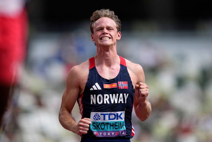 Der Topfavorit Sander Skotheim ist bei den Leichtathletik-Weltmeisterschaften in Tokio im Zehnkampf ausgeschieden. Beim Start in den zweiten Tag blieb der Weltjahresbeste und Hallen-Weltmeister an einer Hürde hängen, stolperte fast und stieß die folgende Hürde per Hand um. Dies führte zur Disqualifikation. Von den ursprünglich 24 Zehnkämpfern in der Startliste sind nach sechs Disziplinen nur noch 17 übrig.