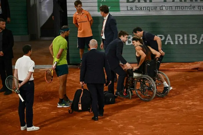 Die Szenen auf dem Court Philippe Chatrier hatten bereits am Freitag Schlimmes vermuten lassen. Mit schmerzverzerrtem Gesicht lag Zverev auf dem Boden, mit Tränen in den Augen wurde er im Rollstuhl vom Platz gefahren. Der Traum vom zweiten Grand-Slam-Finale seiner Karriere und der Chance auf den ersten Titel bei einem der vier wichtigsten Turniere war auf brutalste Art und Weise geplatzt. Beim Stand von 6:7 (8:10), 6:6 aus seiner Sicht war nach mehr als drei Stunden Spielzeit im Halbfinale gegen Rafael Nadal plötzlich Schluss.