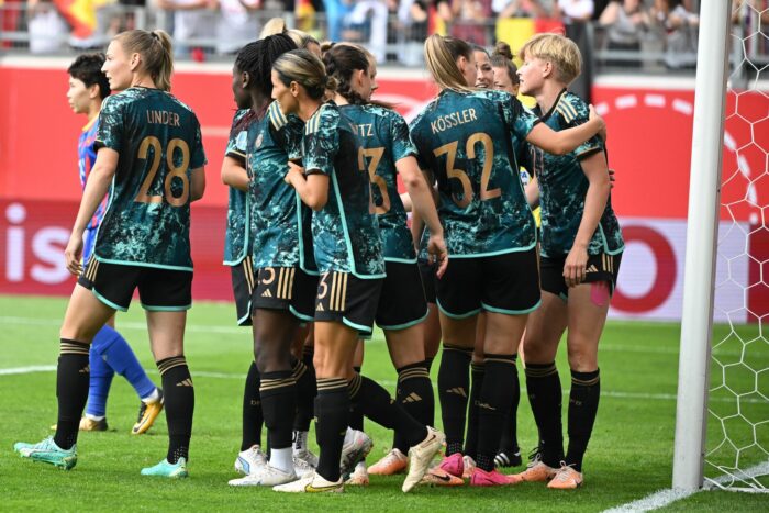 Voss-Tecklenburg hatte in Torhüterin Merle Frohms und Lena Lattwein nur zwei Wolfsburgerinnen in der Startelf und – wie angekündigt – keine Spielerin des FC Bayern. Nach dem Streit zwischen dem DFB und dem Münchner Club um deren spätere Anreise wollte die Bundestrainerin «keine Risiken eingehen», weil die Bayern-Asse um Lena Magull und Lea Schüller nach ihrem Urlaub erst am Freitag zum Nationalteam gestoßen waren.