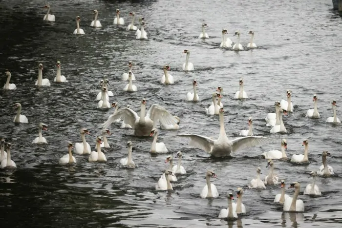 Hamburgs Alsterschwäne sind nun wieder auf der Außenalster und den umliegenden Gewässern unterwegs. Die rund 120 Höckerschwäne haben am Dienstagmorgen ihr Winterquartier verlassen.