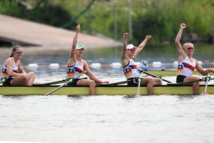 Am Ende des imposanten Schlussspurts entluden sich die Emotionen. Lauter noch als die siegreichen Britinnen bejubelte der Frauen-Doppelvierer den ungewöhnlichen Coup und den Gewinn der Bronzemedaille. In scheinbar aussichtsloser Lage mobilisierte die Crew um Schlagfrau Pia Greiten (Osnabrück) noch einmal letzte Kräfte und wurde belohnt. Mit einem Mal waren alle Entbehrungen der vergangenen Wochen vergessen: «Es hat sich alles gelohnt, was man dafür reingesteckt hat. Der ganze Verzicht, die ganzen schweren Stunden. Das fühlt sich grandios an», schwärmte die Dortmunderin Tabea Schendekehl mit seligem Lächeln.