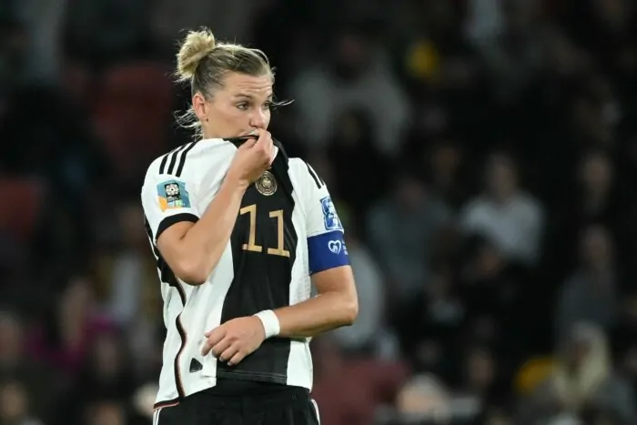 Fassungslos und sichtlich mitgenommen rang Alexandra Popp um Erklärungen für die größte Blamage in der Geschichte der deutschen Fußballerinnen.