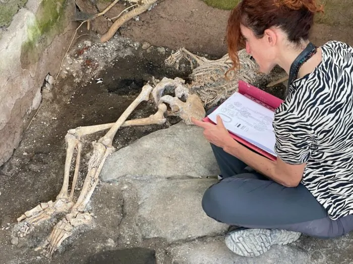 Bei den Ausgrabungen in der Via di Nola in einem der neun Stadtteile, in die die antike Stätte unterteilt ist, legten die Archäologen zwei Häuser frei. Bereits 1888 hatte man dort mit Ausgrabungen begonnen, diese dann allerdings unterbrochen, hieß es weiter. In einem Haus befanden sich den Erkenntnissen zufolge unter anderem eine Wäscherei mit Wannen zum Waschen und Färben von Kleidung, eine Bäckerei sowie ein Raum zur Verarbeitung und Herstellung von Lebensmitteln. In jenem Gebäude fand man die Knochenreste.
