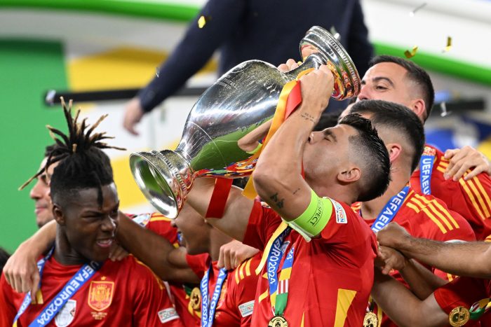 Auf dem Weg zum Finale hatte die spanische Nationalmannschaft im Viertelfinale die deutsche Nationalmannschaft aus dem Turnier geworfen. Marc Cucurella, der in der Verlängerung gegen die DFB-Auswahl den Ball im Strafraum an die Hand bekommen hatte, aber keinen Elfmeter verursacht hatte, wurde auch im Finale lange von einigen Fans ausgepfiffen. Spät am Abend feierte der 25-Jährige überglücklich mit seinen Teamkollegen.