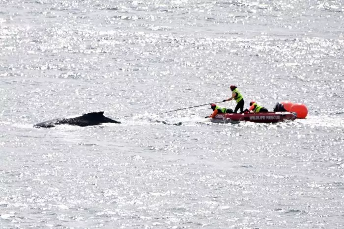 Die Rettungsaktion habe in den Morgenstunden um 07:30 (Ortszeit) begonnen, gegen 11:15 sei es den Mitarbeitern schließlich gelungen, durch einen Schnitt den Buckelwal von den Seilen zu befreien. «Dies ist eine gefährliche Arbeit und sollte nur von gut ausgebildeten Experten durchgeführt werden,» schrieben die Wildretter.