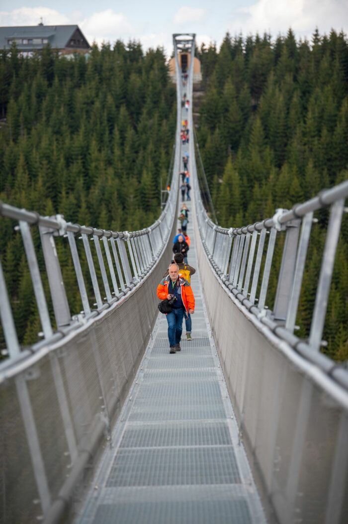 Sie ist 721 Meter lang und führt in 95 Metern Höhe über eine Schlucht im Glatzer Schneegebirge. Am Freitag wird die Fußgänger-Seilbrücke für Besucher eröffnet.