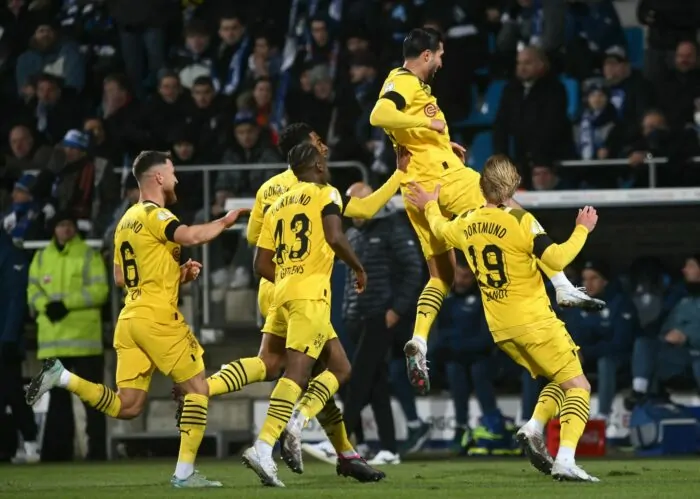 Ein sehenswerter Spielzug der Borussia, den der eingewechselte Kapitän Marco Reus (70.) nach Vorlage von Jude Bellingham zum entscheidenden 2:1 nutzte, ebnete den Weg zum Sieg. Das zwischenzeitliche 1:0 für die Gäste hatte Emre Can mit einem kuriosen Treffer aus vom ZDF gemessenen 50,3 Metern erzielt, bei dem der zu weit aus seinem Tor geeilte Bochumer Schlussmann Manuel Riemann keine gute Figur abgab.