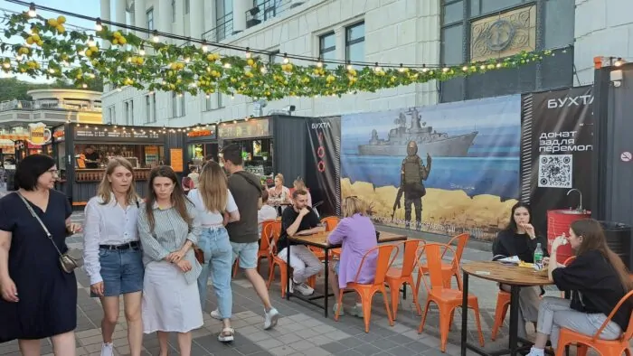 «Was sollen wir machen, uns wegen Putin weinend im Keller verschanzen? Dürfen wir nicht mehr lachen?», kontert eine junge Ukrainerin auf die für sie offenkundig überraschende Frage nach ihrer Angst im Alltag. Die Frau, die nach eigenen Angaben in Kiew studiert, wartet in einer Einkaufsstraße unweit des Olympiastadions auf ihre Freunde und gibt sich betont gelassen. Spätestens wenn die Ukrainer aus Angst nicht mehr vor die Tür gingen, hätten die Russen gewonnen. «Sie greifen unsere Freiheit an, also zeigen wir ihnen, dass sie zwar das Land angreifen können, aber niemals unseren Freiheitsdrang.»