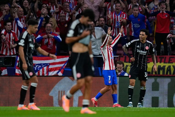 Es wurde noch schlimmer für die Hessen, als Alvarez mit einem Antritt Frankfurts Abwehrchef Robin Koch stehen ließ und den Ball zurücklegte auf Griezmann, der mit seinem 200. Tor im Trikot der Rojiblancos zum 3:0 traf. Anschließend ließ er sich von den Fans für seinen Vereinsrekord feiern.