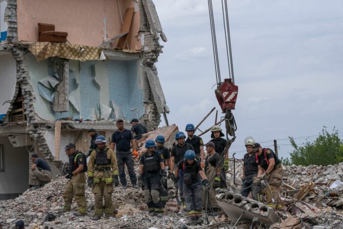 Im Ort Tschassiw Jar im Gebiet Donezk sind ukrainischen Angaben zufolge 15 Menschen tot aus einem eingestürzten Wohnblock geborgen worden. Präsident Wolodymyr Selenskyj drohte russischen Soldaten daraufhin mit Konsequenzen. Zugleich befahl er seiner Armee, besetzte Gebiete im Süden des Landes zurückzuerobern. Zivilisten wurden dort einmal mehr zur Flucht aufgerufen. Heute ist für die Ukraine der 138. Tag des Krieges.