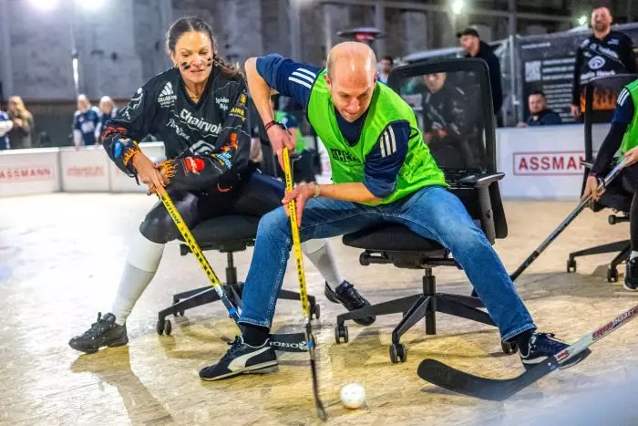 Rund 500 Sportlerinnen und Sportler rollen durch die Halle. «Das ist schon der Wahnsinn», sagte Initiator Jens Fislage. Angefangen habe alles mit einem «kleinen Gag»: Der Inhaber eines Büromöbelhandels aus Ritterhude (Landkreis Osterholz) wollte seine Firmenfeier mit einem Hockey-Turnier mit Bürostühlen auflockern. Die eigene Lagerhalle wurde schnell zu klein, inzwischen treten Mannschaften aus ganz Deutschland gegeneinander an.