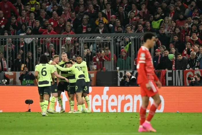 Citys Tormaschine Erling Haaland sorgte bei der Rückkehr von Starcoach Pep Guardiola nach München in der 57. Minute nach einem unglücklichen Ausrutscher von Dayot Upamecano für den endgültigen K.o. des deutschen Fußball-Meisters, der das Hinspiel mit 0:3 verloren hatte. Der verwandelte Handelfmeter von Joshua Kimmich kam zu spät für eine historische Aufholjagd (83.). Für den emotional aufgeladenen Bayern-Coach Thomas Tuchel endete das Spiel gar auf der Tribüne, nachdem er wegen Meckerns die Gelb-Rote Karte sah (86.).