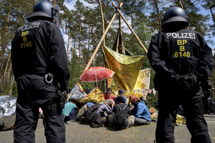 Während eines Demonstrationszugs versuchten am Freitag mehrere Aktivisten, auf das Gelände des Tesla-Werks zu gelangen. Sie überwanden einen Wildzaun im Wald am Rande der Teslafabrik des US-Unternehmers Elon Musk. Die Polizei hinderte sie daran, das Werksgelände zu betreten. Auf einem Flugplatz in Neuhardenberg gelang es Demonstranten, das Gelände zu betreten, Pyrotechnik zu zünden und Tesla-Fahrzeuge mit Farbe zu beschädigen. Die Polizei versuchte laut einem Sprecher, auch dieses Gelände zu schützen, was aufgrund der enormen Größe des Flugplatzes jedoch erschwert war.