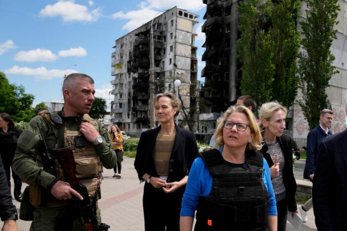 Deutschland werde auch die nächsten Jahre Partner bleiben, sagte sie vor durch russische Luftschläge zerstörten Häusern. «Aber wir dürfen nicht erst warten, bis der Krieg zu Ende ist, wir müssen jetzt wieder anfangen, zu helfen und aufzubauen». Die Soforthilfegelder sollen unter anderem in den Wiederaufbau der zerstörten Häuser gehen. Aber auch Müllabfuhr und Abfallwirtschaft bräuchten die Menschen. Das Entwicklungsministerium werde auch in Zukunft dabei stark mit den betroffenen Gemeinden kooperieren, sagte sie im Gespräch mit Borodjankas Bürgermeister Georgi Jerko.