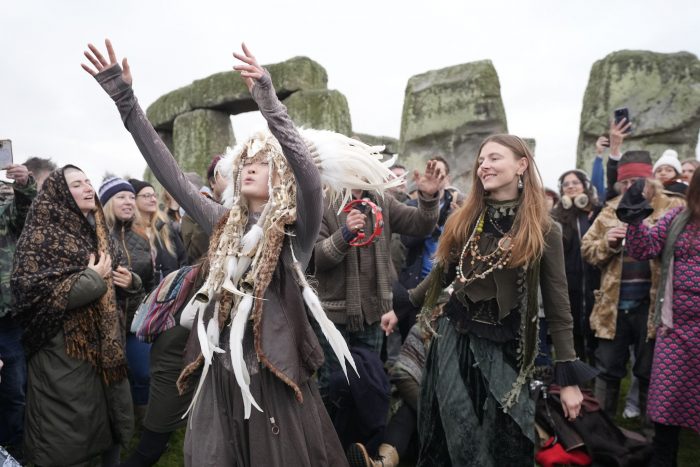 Tausende Menschen haben am weltberühmten Monument Stonehenge im englischen Salisbury traditionell die Wintersonnenwende gefeiert. Sie begrüßten dort am Sonntagmorgen den Sonnenaufgang, der den kürzesten Tag des Jahres einläutet. Auf Bildern ist zu sehen, wie die zahlreichen Besucher rund um den berühmten Steinkreis tanzen, singen und musizieren. Mit der Wintersonnenwende werden die Tage nun wieder länger.