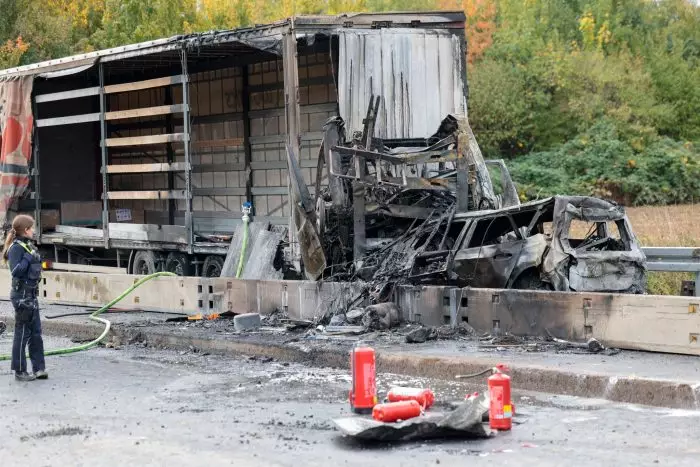 «Es gab einen riesigen Feuerball», schilderte ein Feuerwehr-Sprecher am Unfallort. Die Situation sei für die Einsatzkräfte «sehr, sehr herausfordernd» gewesen. Mittlerweile sei der Brand gelöscht.