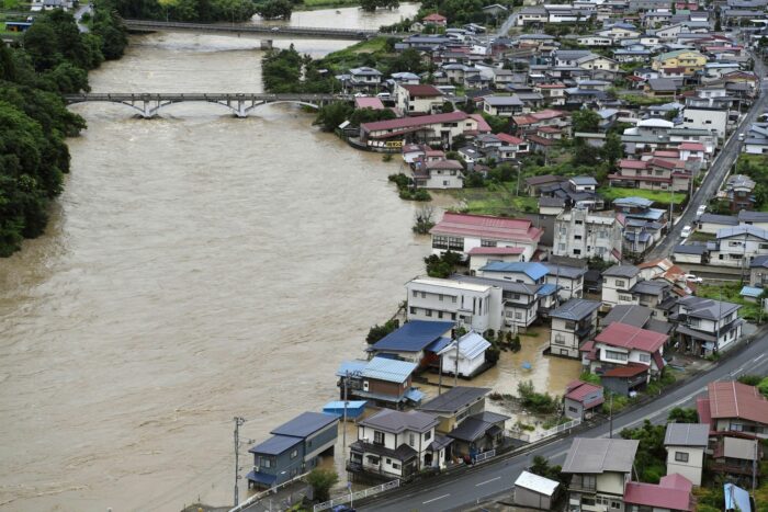 In Japan hat starker Regen zu Überschwemmungen geführt. Dort sind die Menschen aufgerufen worden, sich in Sicherheit zu bringen. Es werden Erdrutsche erwartet.