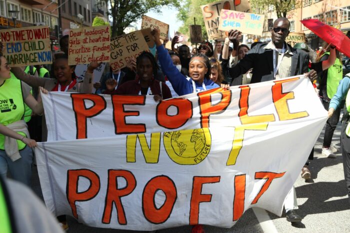Thunberg selbst hielt sich auf dem Großprotest in ihrer Heimatstadt im Hintergrund, um Mitstreiterinnen aus Weltregionen mehr Aufmerksamkeit zu verschaffen, in denen die Klima- und Umweltkrise bereits heute stark spürbar ist. An der Spitze des Demonstrationszugs standen somit Aktivistinnen aus afrikanischen und weiteren Ländern des globalen Südens. Sie trugen ein großes Banner mit der Aufschrift «People Not Profit», mit dem sie darauf pochten, dass das Wohl der Menschen wichtiger sei als Gewinne von Konzernen.