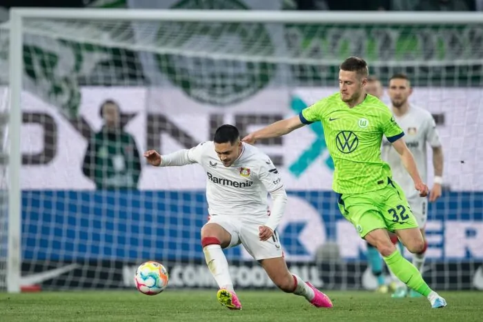 Allerdings merkte man der zuletzt besten Bundesliga-Mannschaft die hohe Belastung durch die internationalen Spiele merklich an. Die langen Bälle auf die von VfL-Trainer Niko Kovac als «flinken Jungs» bezeichneten Offensiv-Stars um Moussa Diaby kamen nur selten an. Von der Spielfreude der vergangenen Wochen war kaum etwas zu sehen. Die beste Gelegenheit in der ersten halben Stunde besaß Adam Hlozek. Der Tscheche traf zwar die Latte, Passgeber Jeremie Frimpong stand jedoch zuvor im Abseits (27.).