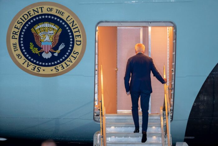 Die Air Force One mit US-Präsident Biden an Bord landet auf dem Ben-Gurion-Flughafen.